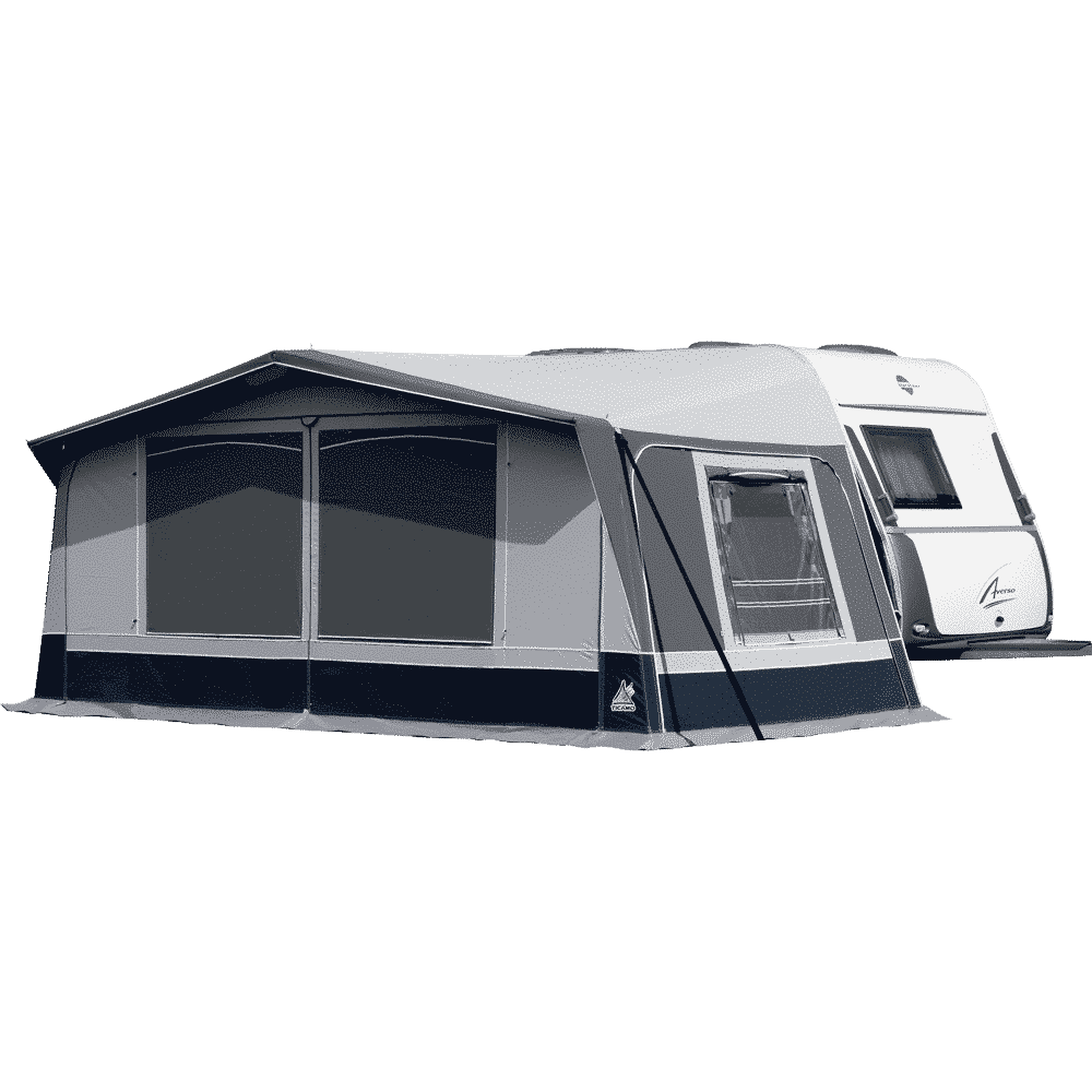L’avancé Palerm s’adapta a caravanes de 3 a 6.06m. Està fabricat en PVC TREVIRA combinant gris i blau. De fàcil rentat i neteja. El frontal pot desmuntar-se completament mitjançant cremalleres o bé convertir-se el frontal en balconera. Totes les finestres estan protegides amb tapes. Laterals amb finestra abatible i amb mosquitera. El sostre està fabricat en PVC Trevira gris.